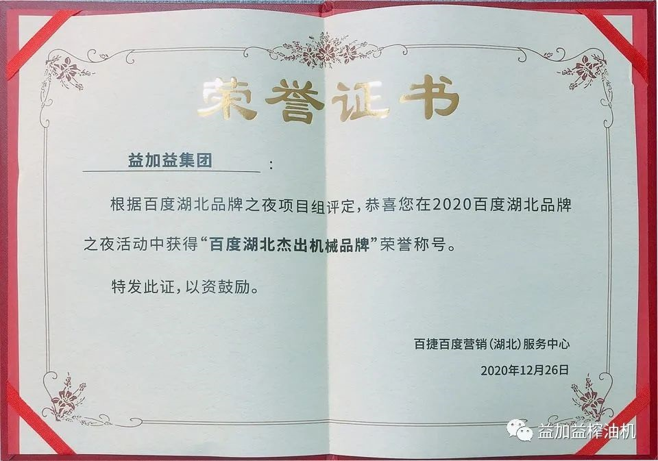 熠熠生輝 | 益加益集團榮膺“湖北省杰出機械品牌”