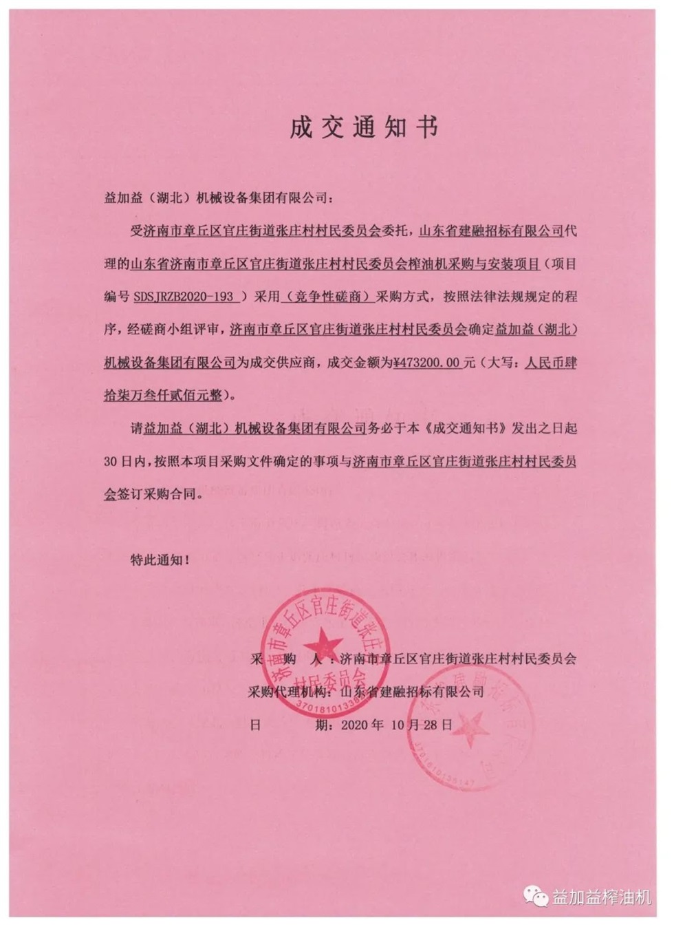 最近、益加益集團(tuán)在山東省濟(jì)南市章丘區(qū)榨油機(jī)采購與安裝招標(biāo)項(xiàng)目的競標(biāo)中,憑借過硬的產(chǎn)品質(zhì)量,優(yōu)秀的新技術(shù),卓越的新工藝,新材料的應(yīng)用以及良好的企業(yè)信譽(yù),以絕對優(yōu)勢順利中標(biāo)。